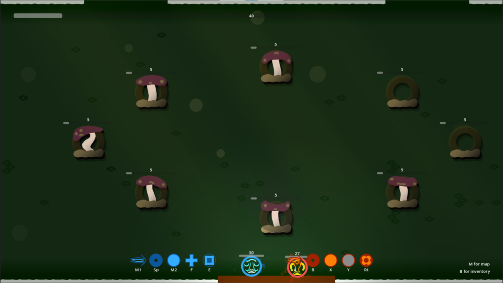 Third, bosses should have some special abilities that build on their smaller version’s abilities. The mushroom boss is a more advanced version of the mushrooms. The bee boss is a more advanced version of the bees. The fight shouldn’t be too foreign to players once they arrive.